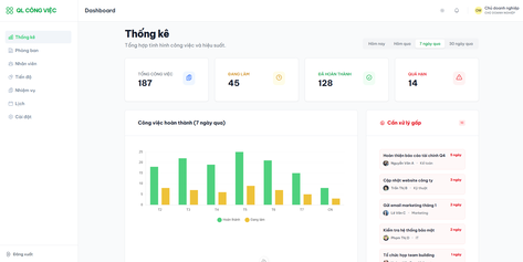- Theo dõi tiến độ trực quan: Bảng thống kê và biểu đồ giúp nắm bắt tình trạng công việc một cách nhanh chóng.
