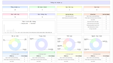 - Biểu đồ phân tích hiệu suất trực quan: Biểu đồ theo dõi tần suất hoàn thành nhiệm vụ theo tuần và theo tháng.