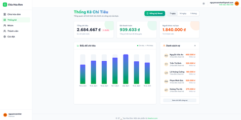 • Chia sẻ hóa đơn bằng QR Code: Tiện lợi và nhanh chóng, mỗi thành viên dễ dàng truy cập hóa đơn của mình.